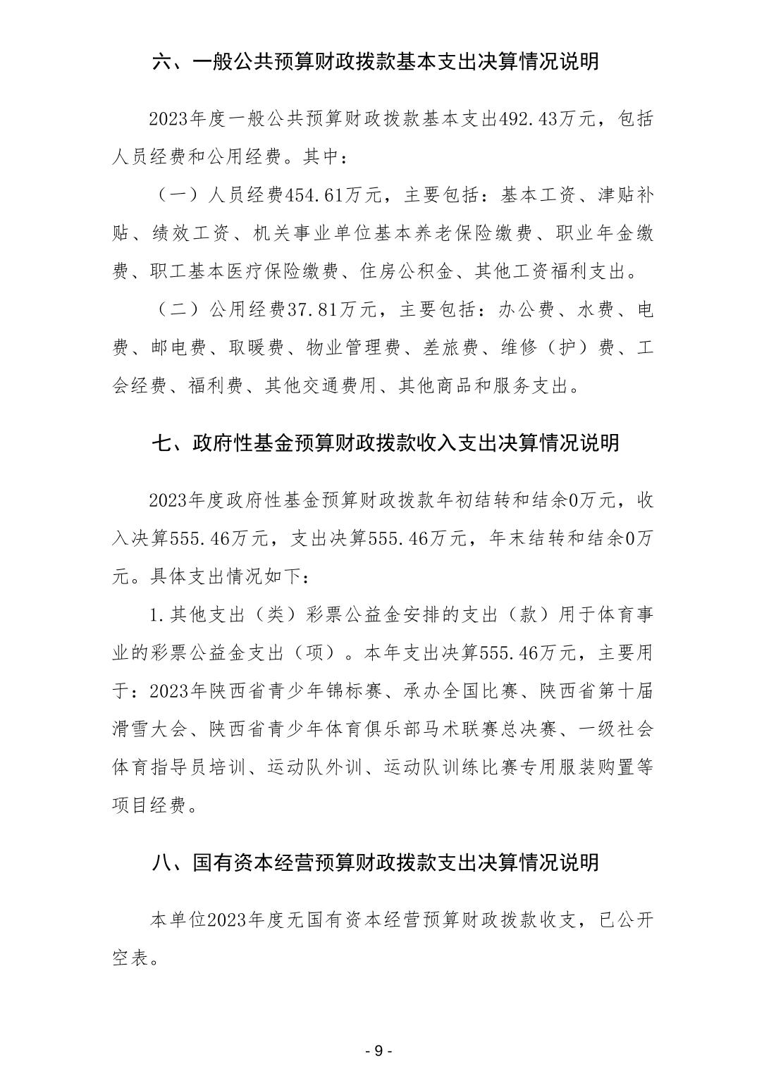 陕西省冬季运动管理中心2023年单位决算公开说明