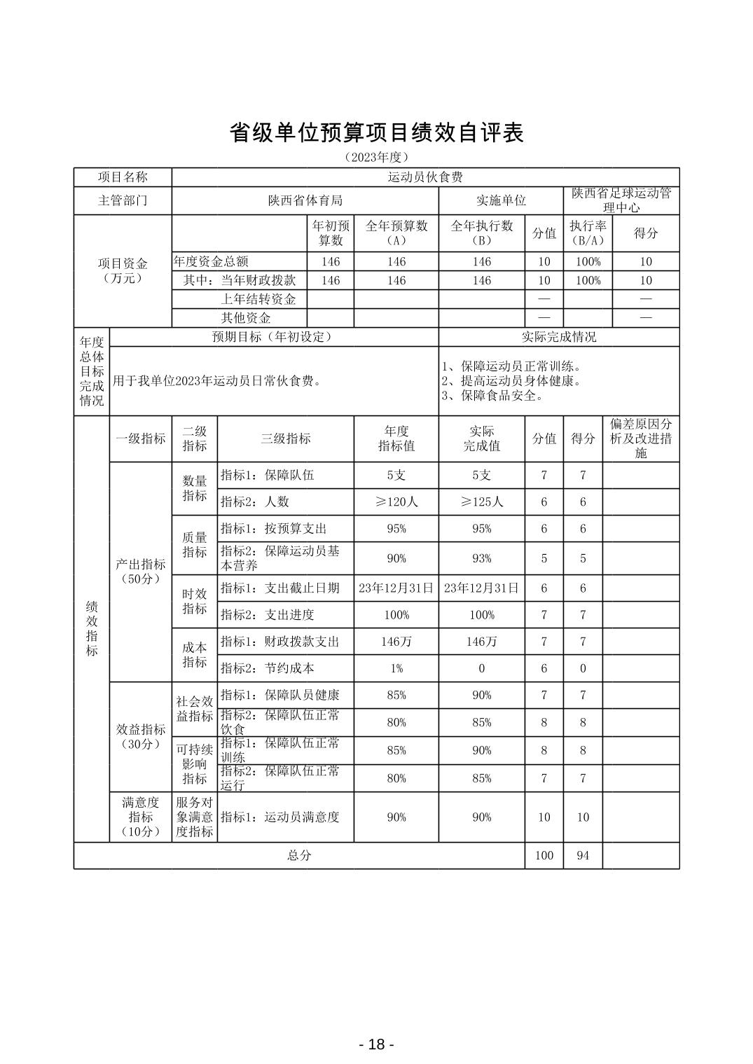 陕西省足球运动管理中心2023年度部门决算