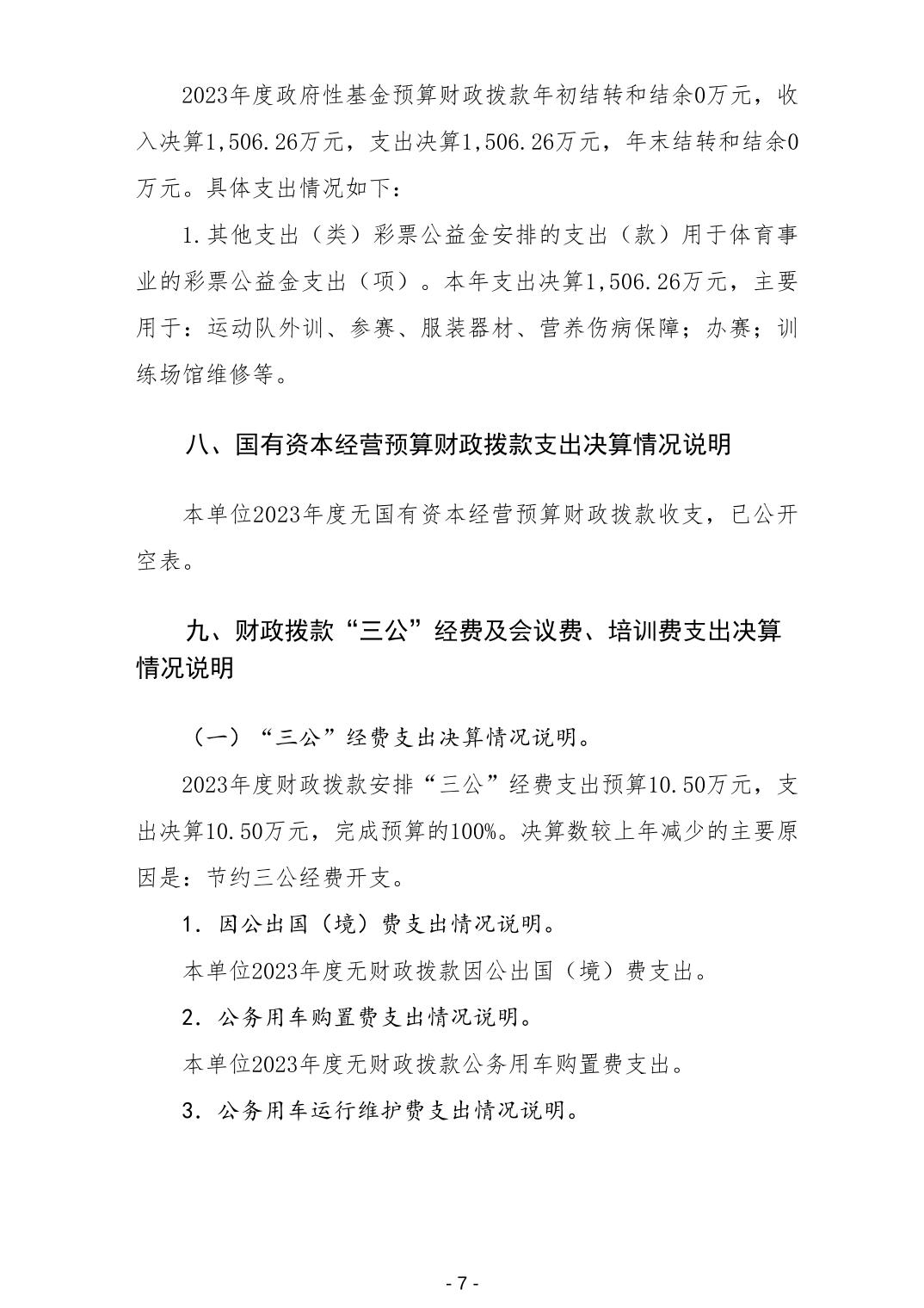 陕西省游泳运动管理中心2023年单位决算公开说明