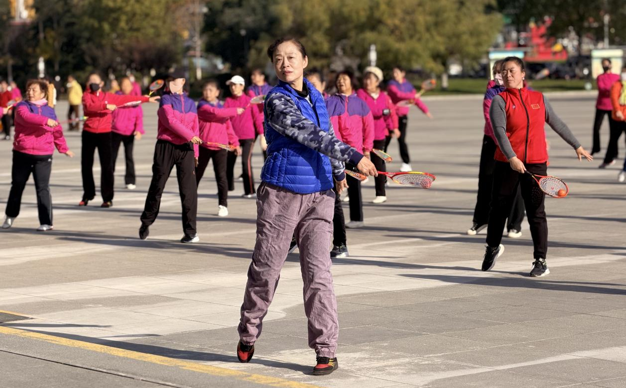 铜川市耀州区人民政府广场前,太极拳教学同样精彩。中国武术七段、国家级非物质文化遗产红拳传承人乌福娟围绕基础动作规范展开指导,只见她来回穿梭在队伍中,帮助学员调整重心位置与手臂弧度,并反复提醒在练习过程中会出现的一些错误动作。谈及教学初心,乌福娟分享道:“太极拳既能调节呼吸、改善体态,还能帮助缓解生活压力。这样有益的传统武术项目,我有责任把它教好、传承好,让更多人感受到传统武术的独特魅力。”
