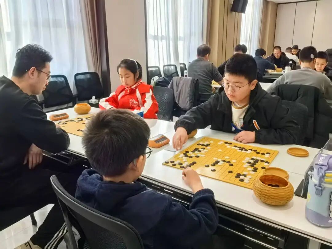 比赛现场,黑白对弈精彩纷呈。团体赛比赛区,棋手们凝神静思、运筹帷幄,举手投足间尽显从容;公开组赛场则勾勒出一幅“老少共弈、以棋会友”的和谐画卷——经验丰富的成年棋手稳扎稳打,稚气未脱的小棋手们端坐棋盘前,眼神坚定、落子果敢。