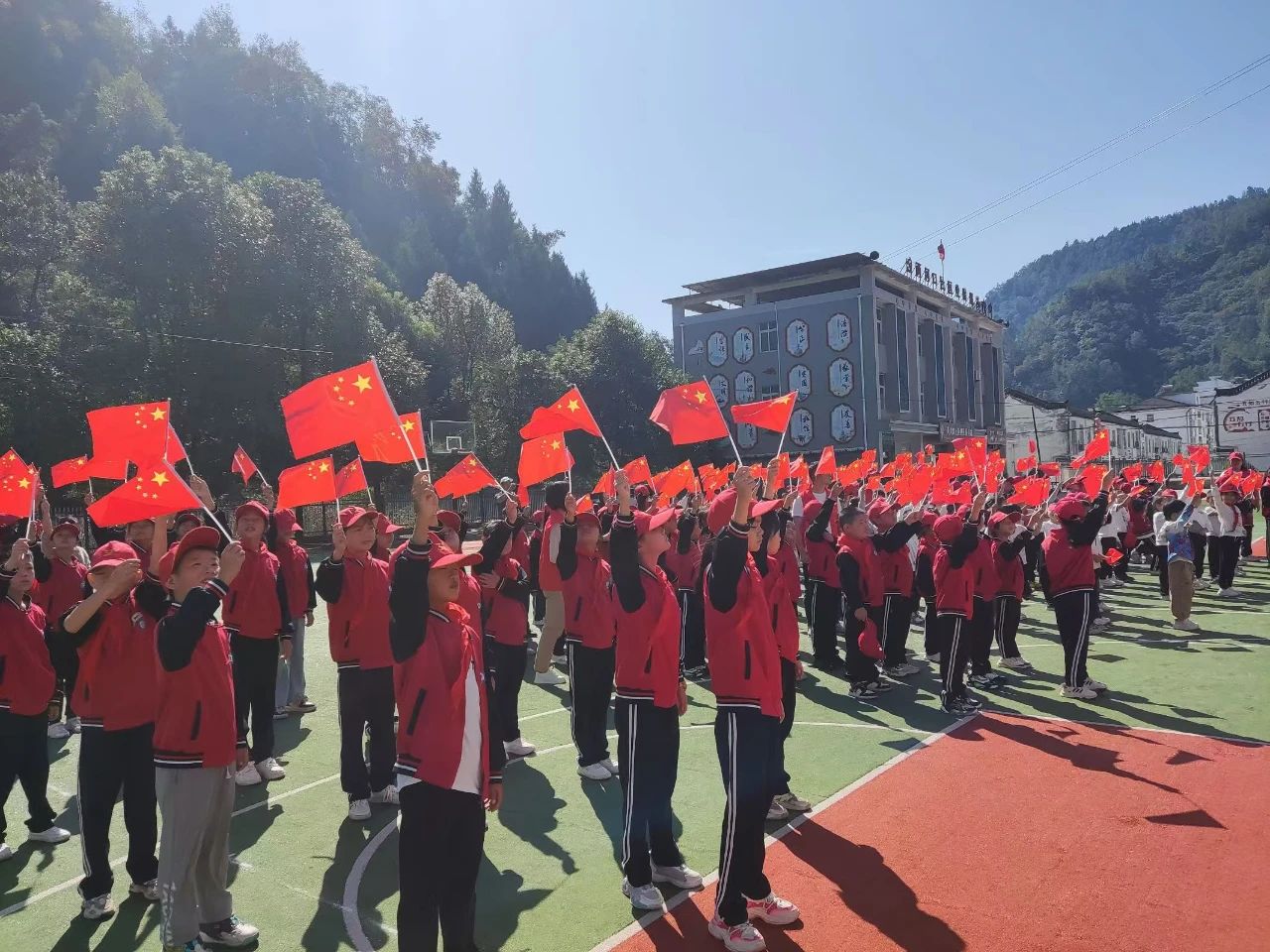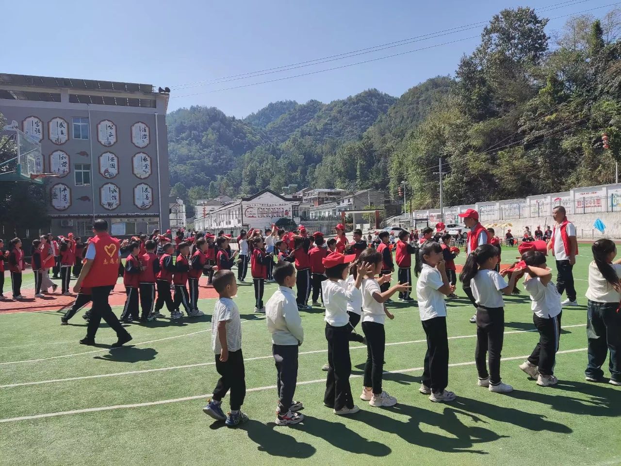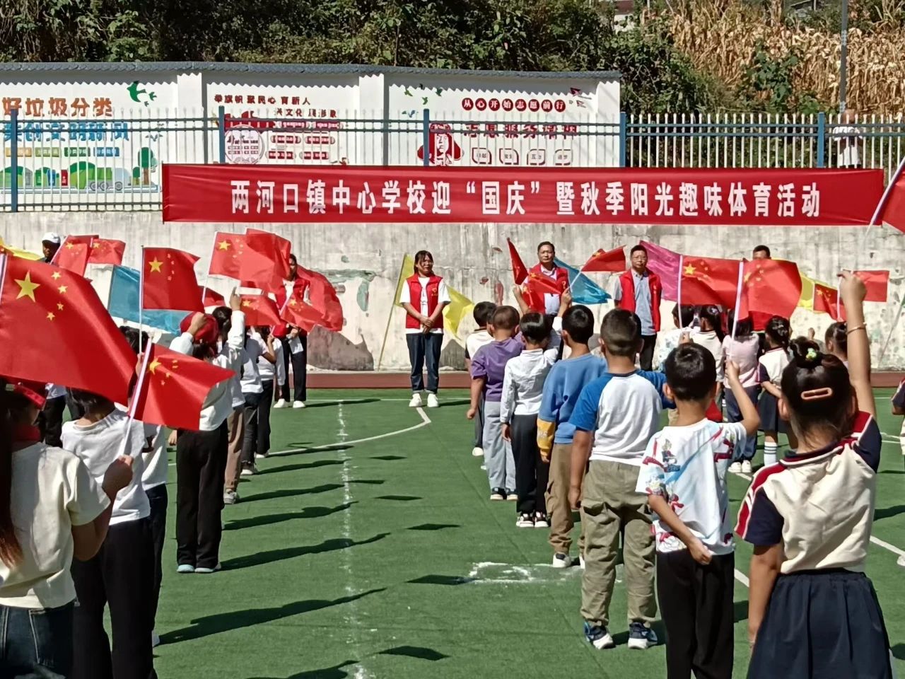 汉中市西乡县两河口镇中心学校全体师生迎“国庆”暨阳光趣味体育活动9月25日在操场上举行。