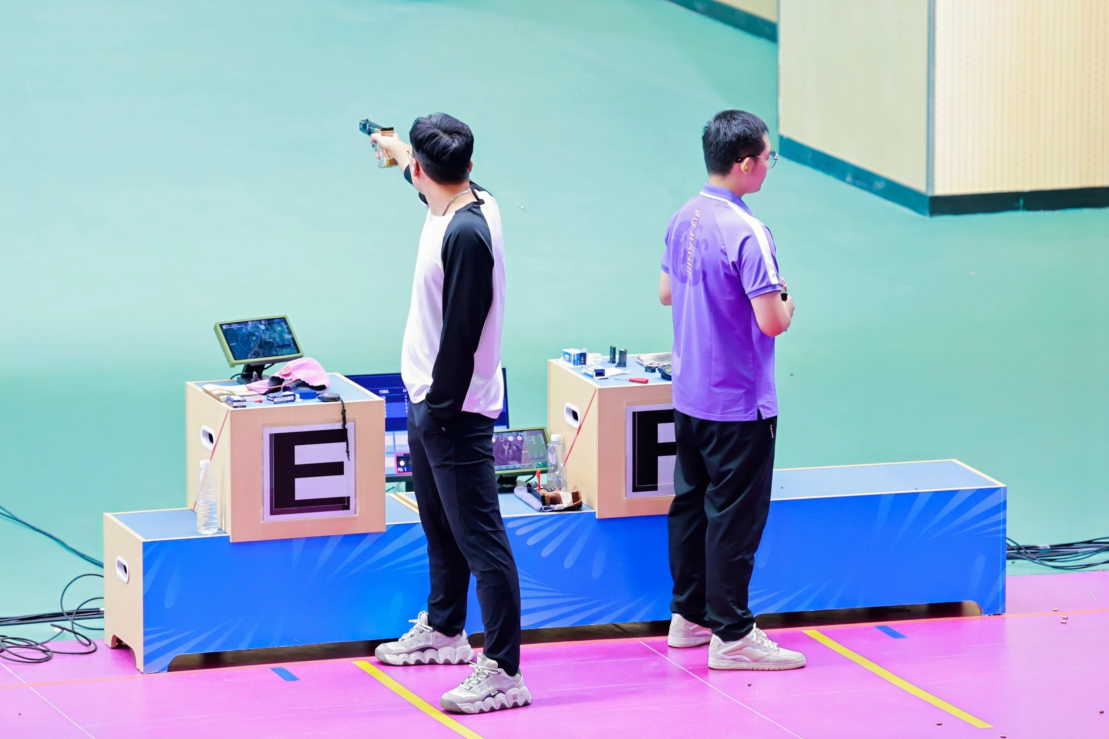 在13日进行的男子25米手枪速射个人决赛中,福建队苏连博凡与陕西队何世瑜展开激烈角逐。首次参加全运会的苏连博凡以588环排在资格赛头名晋级,何世瑜以586环排位第二晋级。决赛首轮,苏连博凡、何世瑜、王仕文纷纷贡献出5次击发全中。随着赛程的推进,苏连博凡、何世瑜凭借30中的成绩,进入冠亚争夺。在第一轮的对决中,双方都打出了5中的好成绩。同分对决,何世瑜率先打出5枪3中,苏连博凡则在第一枪未中的情况下连续命中4枪,以1枪的优势夺得金牌,江西队王仕文凭借精湛的技术和稳重的心态获得铜牌。