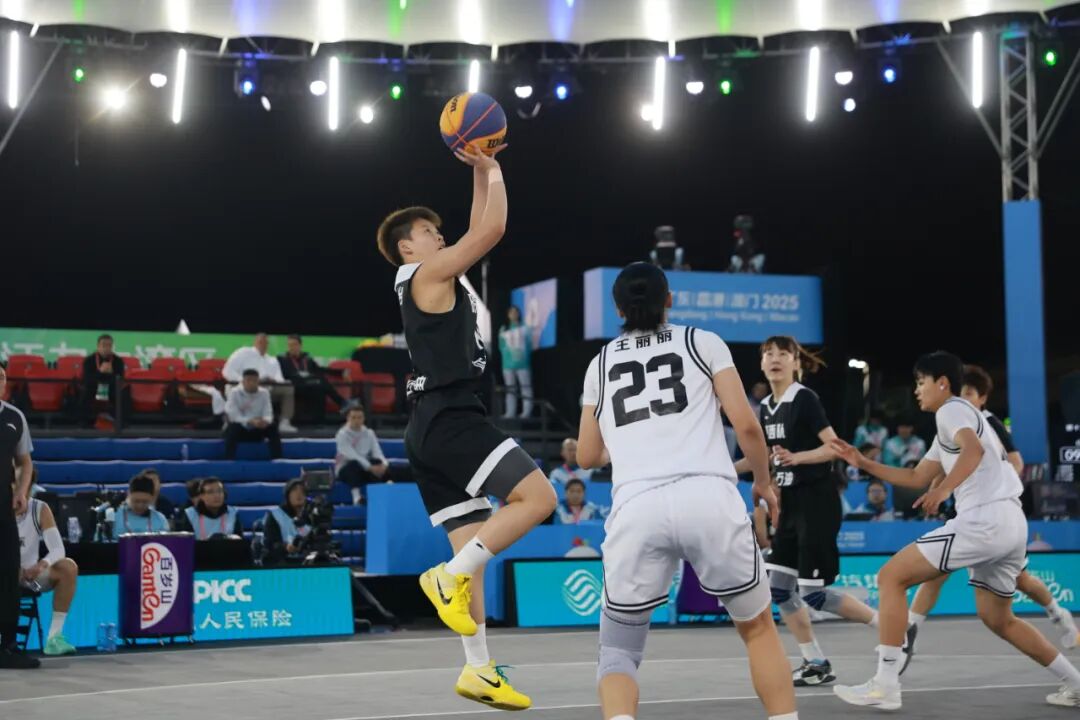 坐拥三人女篮国手王丽丽的山东队,是本届全运会女子三人篮球的夺冠大热门。此役,陕西队4位队员以挑战的心态,全力争胜。开局,陕西队宋珂昕持球突破,冲击篮下得分。山东队则依靠王丽丽在外线的穿针引线,找到高中锋杨衡瑜,后者利用身高优势,在篮下多次上篮得分。