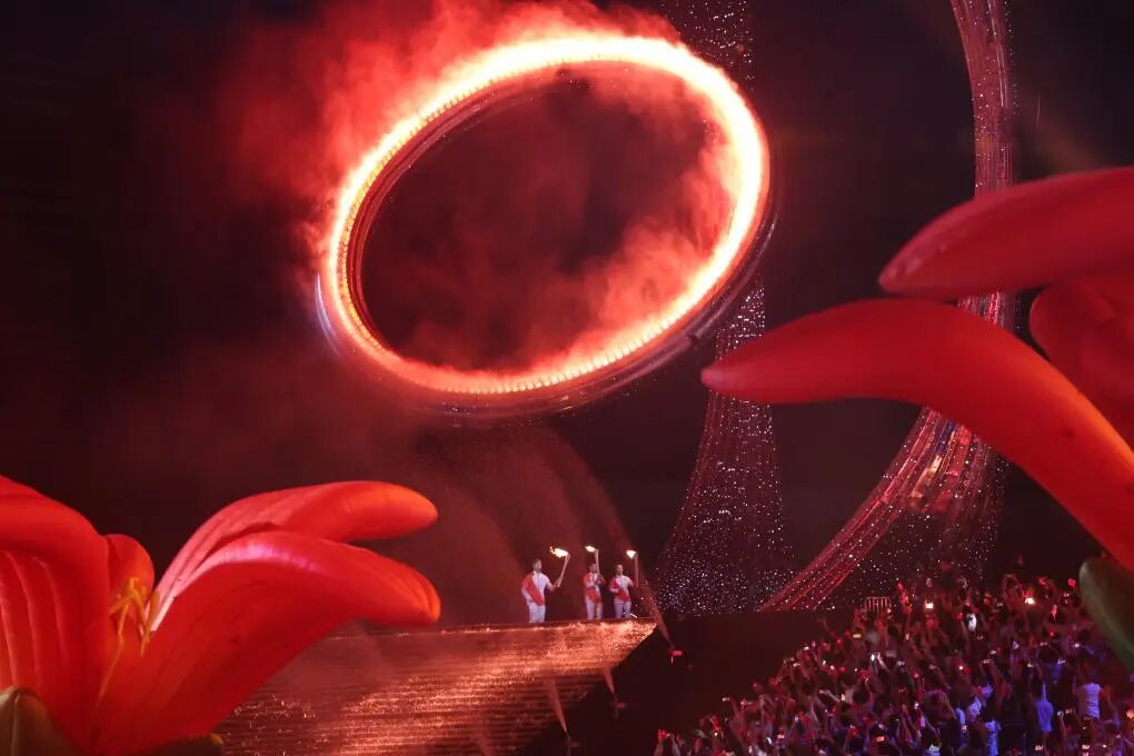 11月9日,第十五届全国运动会开幕式在广东奥林匹克体育中心举行,主火炬被点燃。