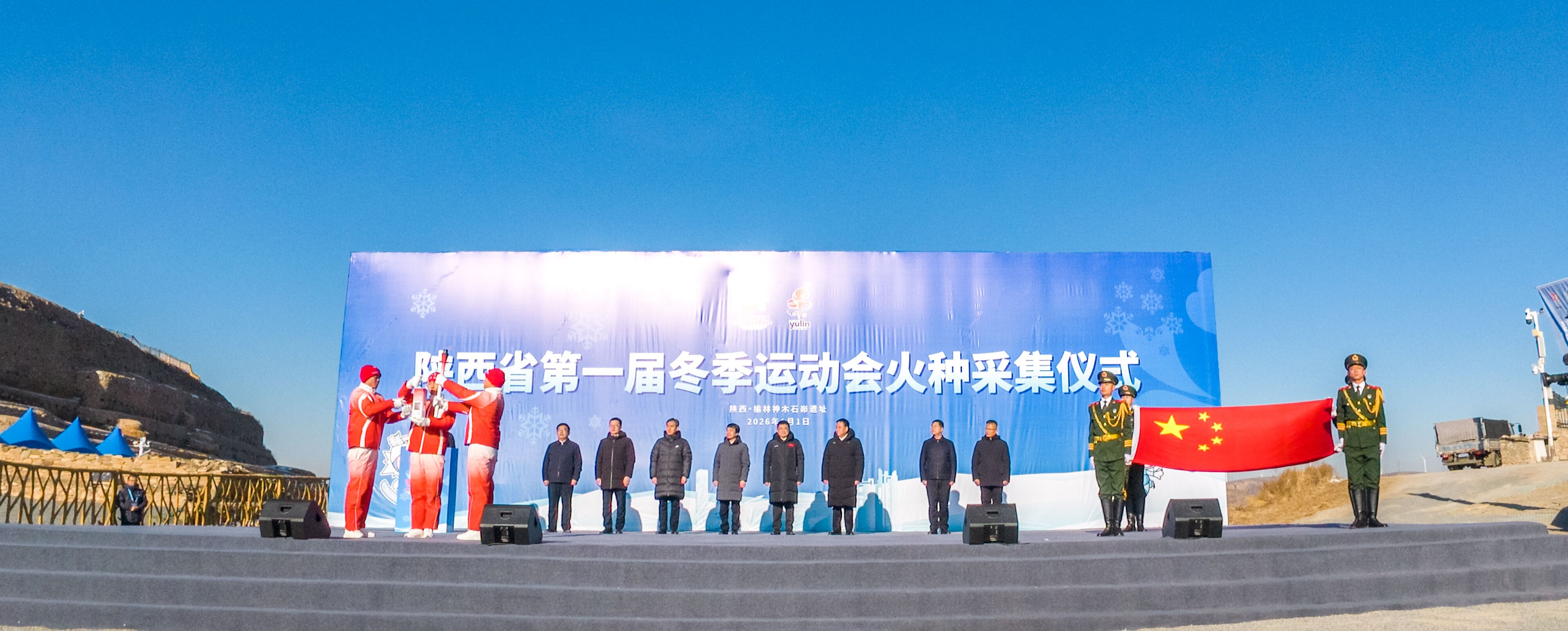 陕西省第一届冬季运动会火种采集仪式在榆林神木石峁遗址举行。