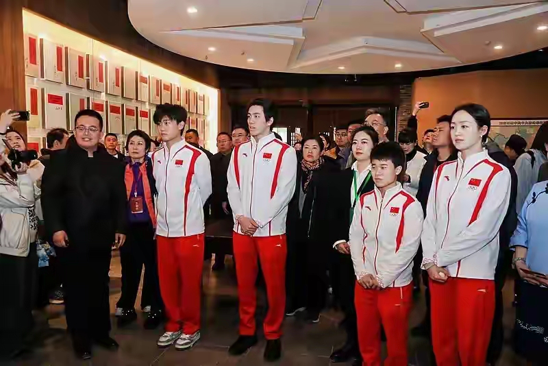“决胜巴黎绽放奥运”巡回宣讲活动在延安举行,奥运冠军参观延安革命纪念馆。