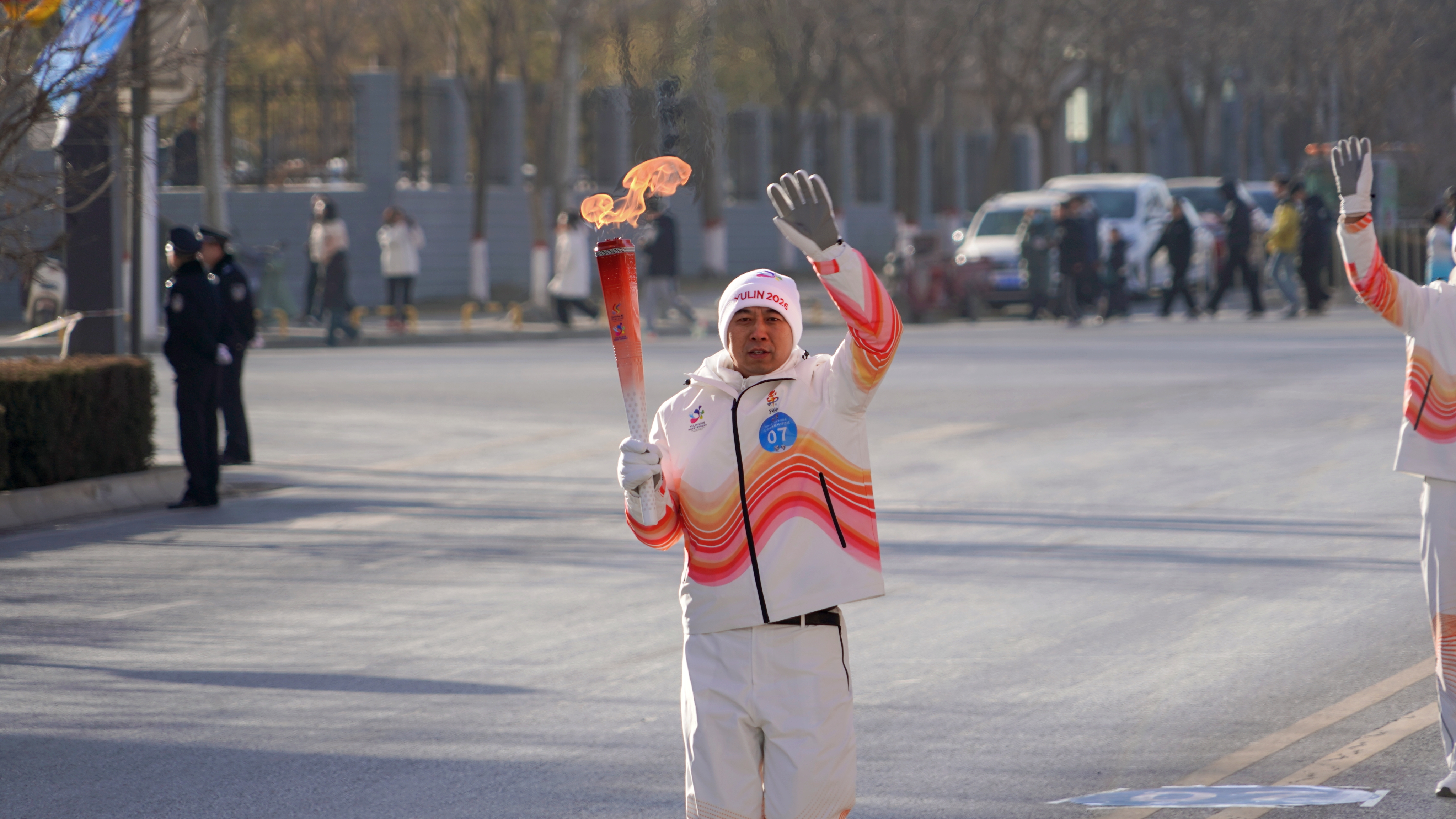 陕西省第一届冬季运动会火炬传递第五站1月16日上午在榆林靖边举行。