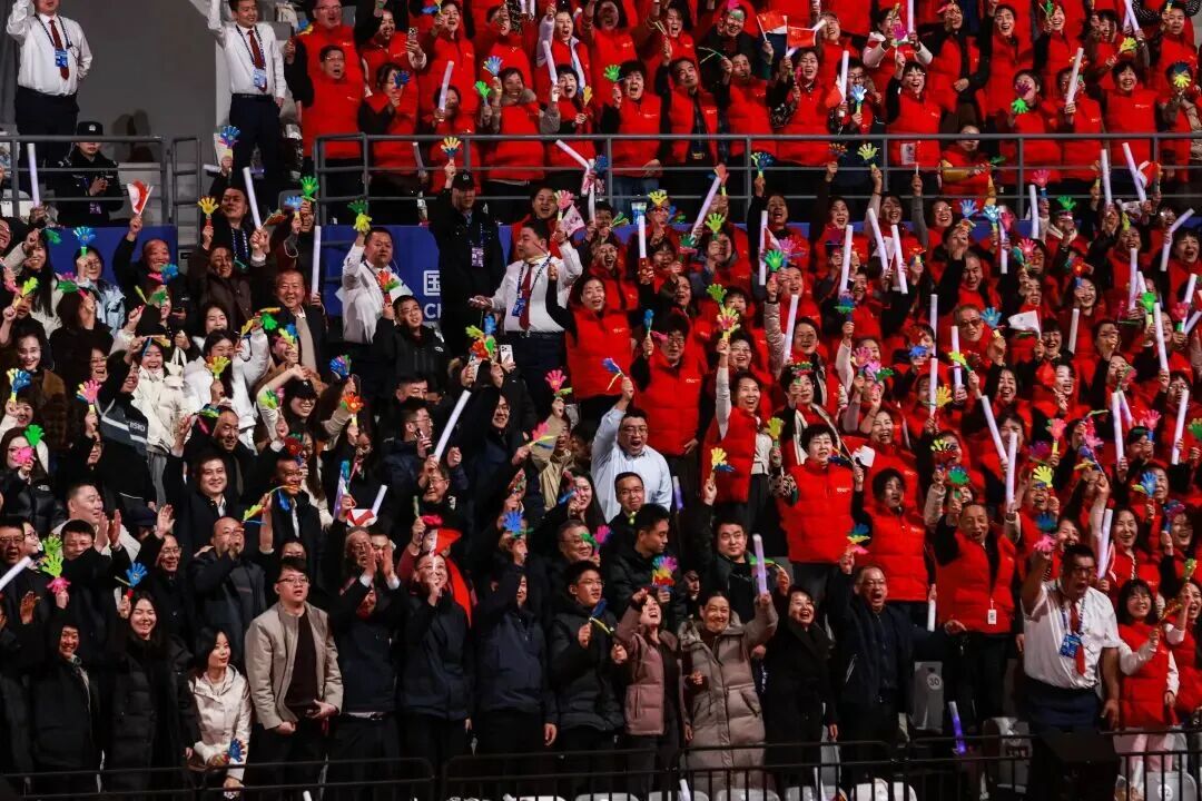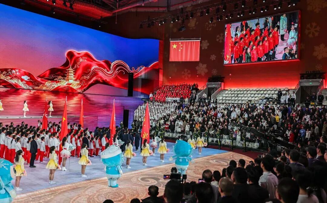 随着倒计时开始,数控矩阵与全景影像交织构建起“秦雪舞长空、琼辉漫山河”的梦幻场景。石峁遗址的冬日炊烟、隋唐的“骑木逐鹿”、延安时期的冰上运动会……十组倒计时数字,串联起陕西冰雪运动与冰雪文化发展的时空脉络。当“1”字最终定格,本届冬运会会徽光芒乍现,全场瞬间响起热烈的欢呼声。
