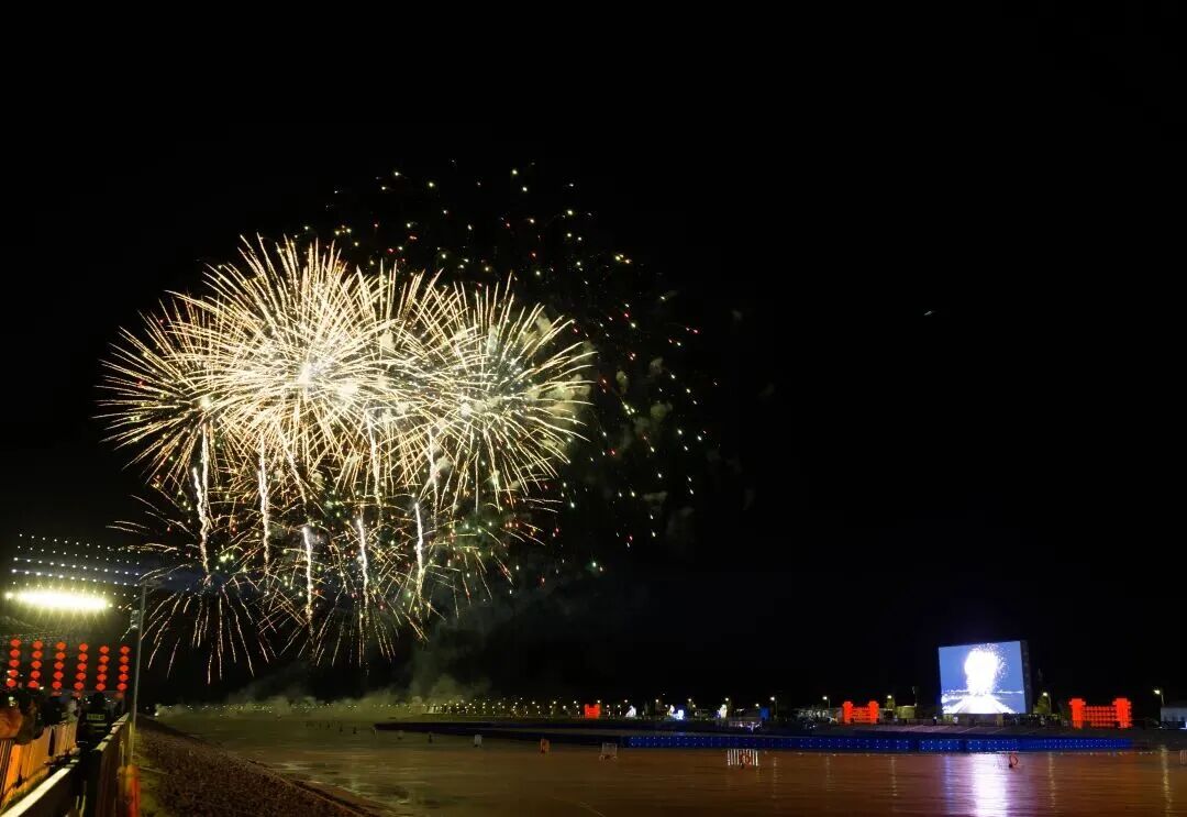 晚9时14分许,全场目光聚焦到分会场,火炬传递及点火仪式正式开启!