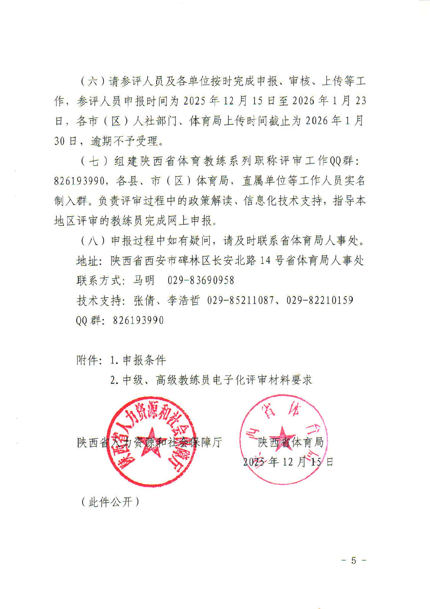 陕西省人力资源和社会保障厅 陕西省体育局关于开展全省体育教练专业技术职称任职资格评审工作的通知