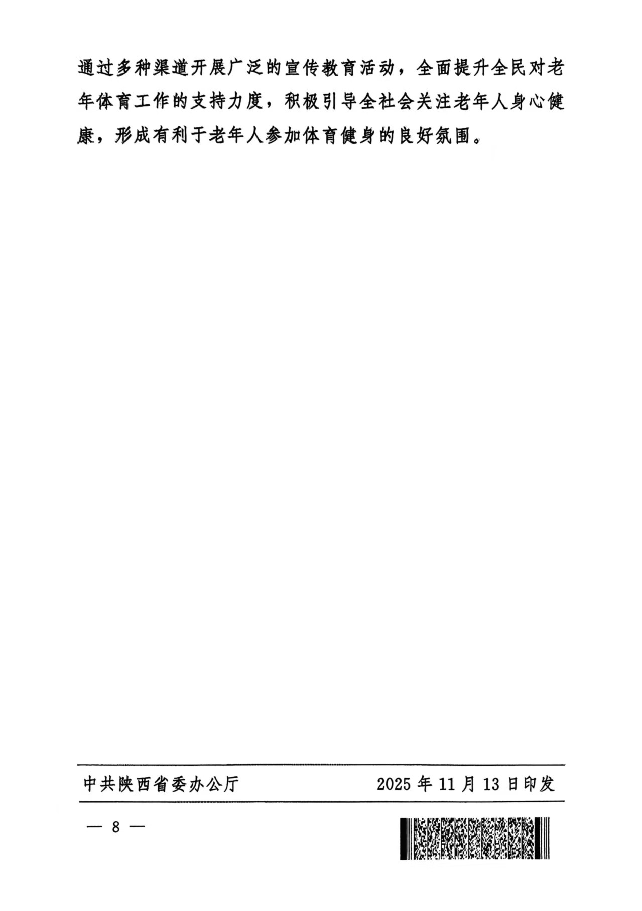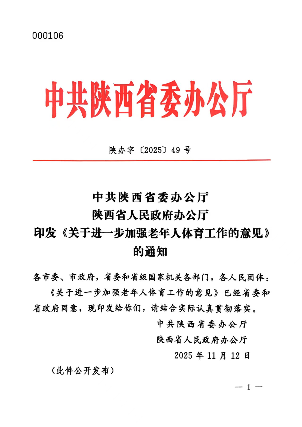 中共陕西省委办公厅 陕西省人民政府办公厅印发《关于进一步加强老年人体育工作的意见》的通知